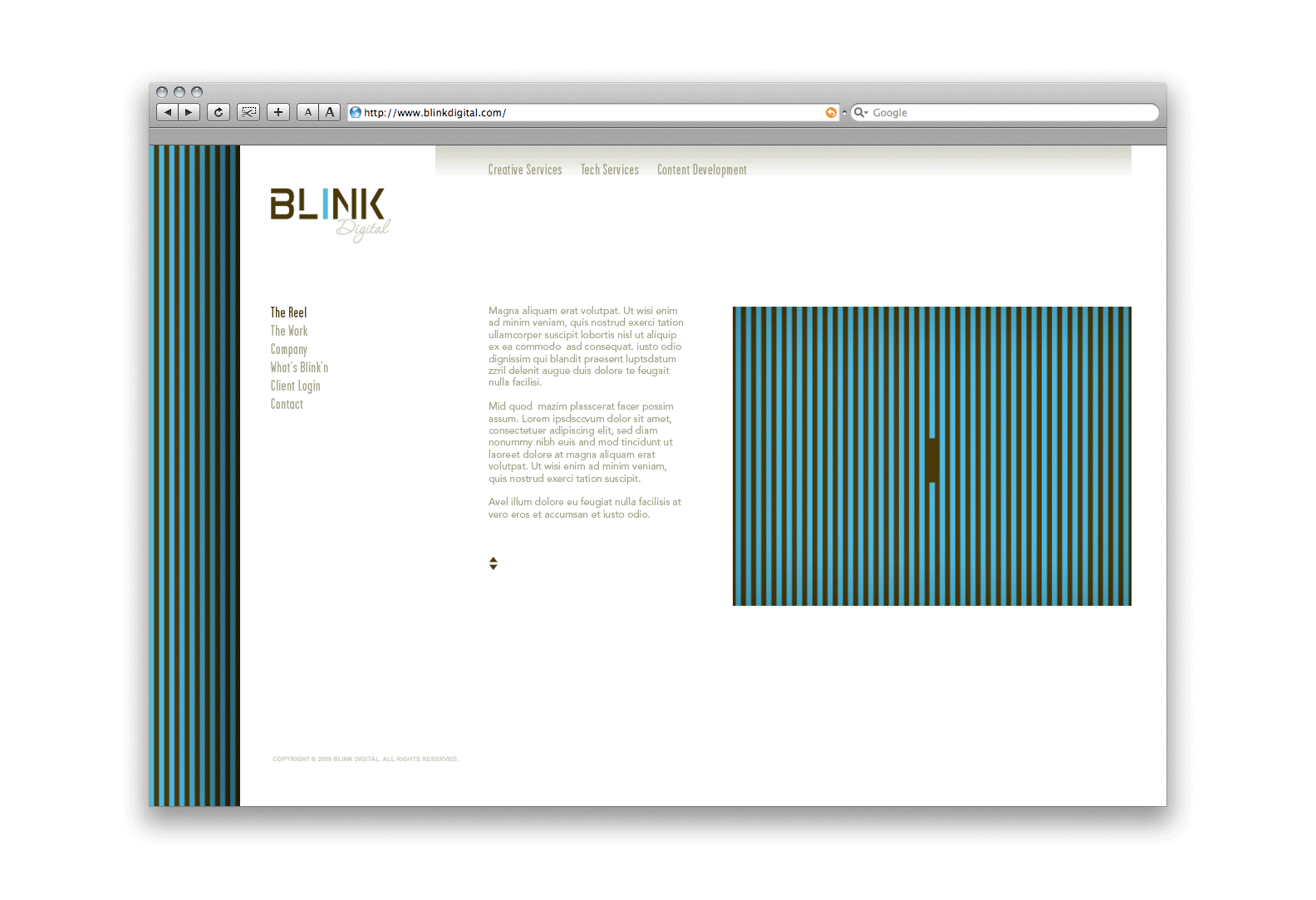 The idea was to incorporate the graphic and action of a blinking cursor into the different media used. Blinking elements were created for use in print, online and throughout interactive reels.