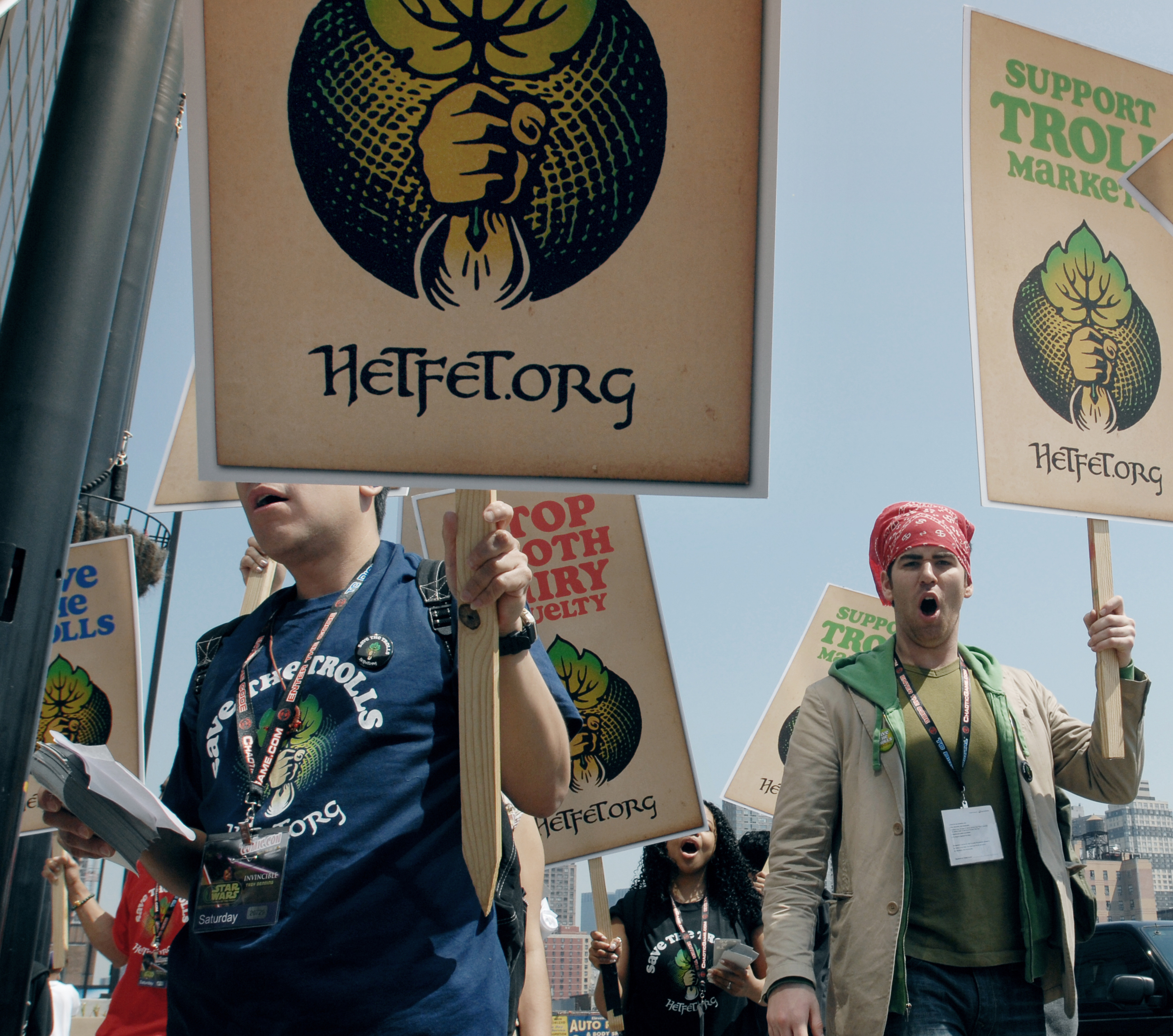Officially kicking off at Comicon, HETFET, our Greenpeace-esque organization staged a friendly protest to draw attention to and petition their causes.